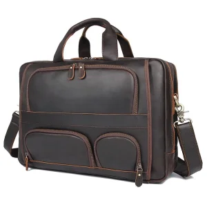 Men Fashion Business Full Grain Genuine Leather Computer Laptop Briefcase