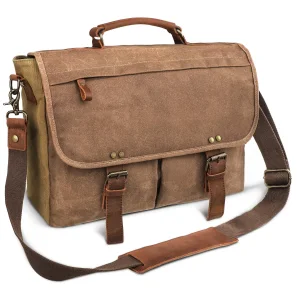 Men Waxed Canvas Briefcase Satchel Shoulder Bag Waterproof Vintage Cowhide Handbag