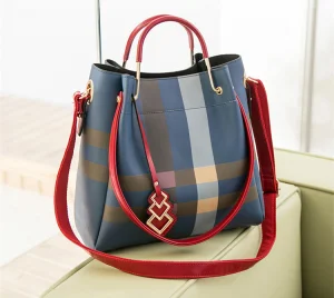Classic Plaid Stripe Tote Small Plaid Bucket Women Split Leather Handbags Ladies Messenger Bags